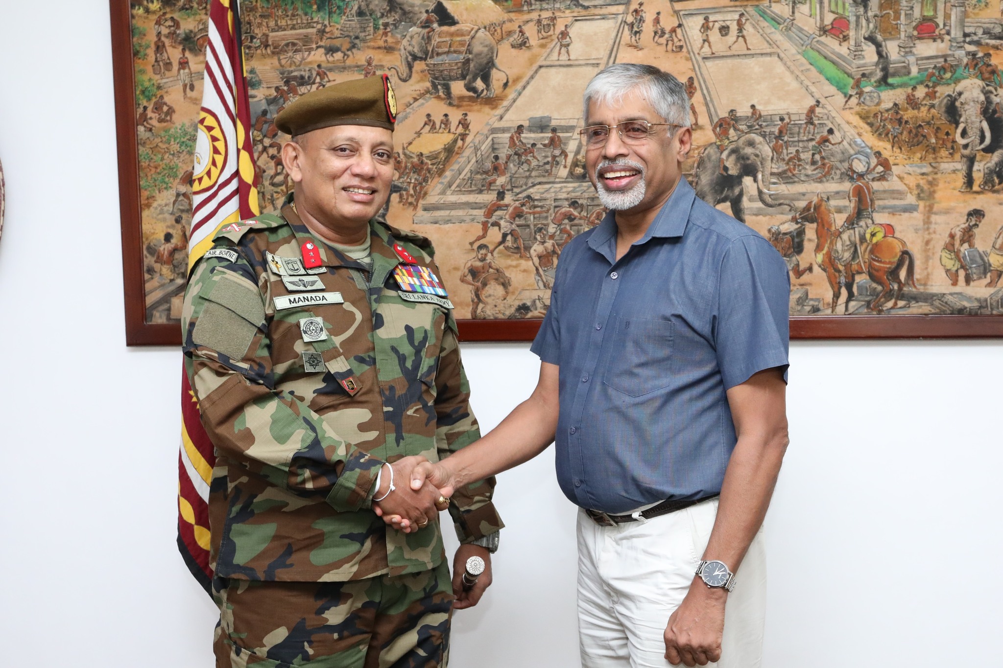 මධ්‍යම පළාත් ආණ්ඩුකාරවරයා සහ මධ්‍යම පළාතේ යුද හමුදා ආඥාපතිවරයා අතර හමුවක්... මධ්‍යම පළාත් ආණ්ඩුකාරවර මහාචාර්ය එස්.බී.එස්. අභයකෝන් මහතා සහ දියතලාව පිහිටි, යුද හමුදා ආරක්ෂක සේනා මූලස්ථානයේ (මධ්‍යම), ආඥාපති මේජර් ජනරාල් වයි.ඒ.බී එම්.යහම්පත් මහතා අතර හමුවක් මහනුවර ආණ්ඩුකාර කාර්යාලයේදී (14) පැවැත්විණි. මෙහිදී මධ්‍යම පළාත් ආණ්ඩුකාරවරයා සහ මධ්‍යම පළාත ආඥපතිවරයා අතර මධ්‍යම පළාතේ ආරක්ෂාව, ආපදා කළමනාකරණය සහ මැතිවරණ කටයුතු ඇතුළු කරුණු සම්බන්ධයෙන් සුහද සාකච්ඡාවක් පැවැත්විණී. මෙම අවස්ථාව සඳහා මධ්‍යම පළාත් ආණ්ඩුකාර ලේකම් මංජුලා මඩහපොළ මහත්මිය, පල්ලේකැලේ, යුද හමුදා කඳවුරේ, 11 පාබල සේනාංකයේ සේනාංකාධිපති, මේජර් ජනරාල් උපුල් කොඩිතුවක්කු මහතා ඇතුළු නිලධාරීන් පිරිසක් එක් වූහ.
